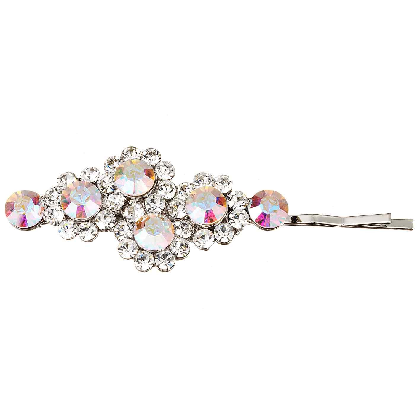AB and clear crystal Swarovski crystals make this hair slide a sparkly addition to your hair style.