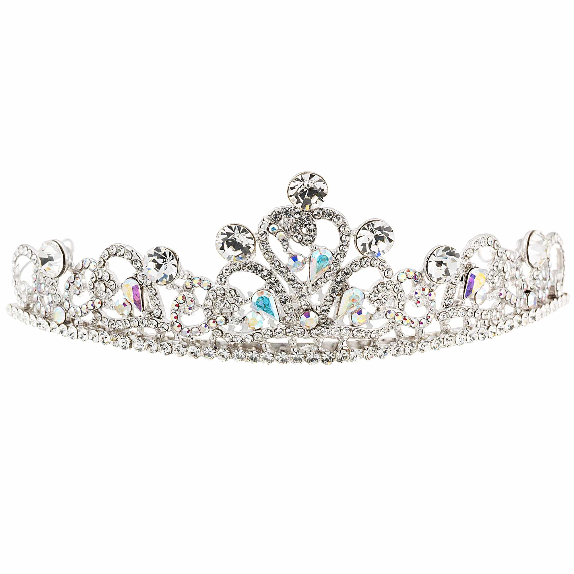 Swarovski Crystal Heart Swirl Tiara with AB & Clear White Diamond Swarovski Crystals