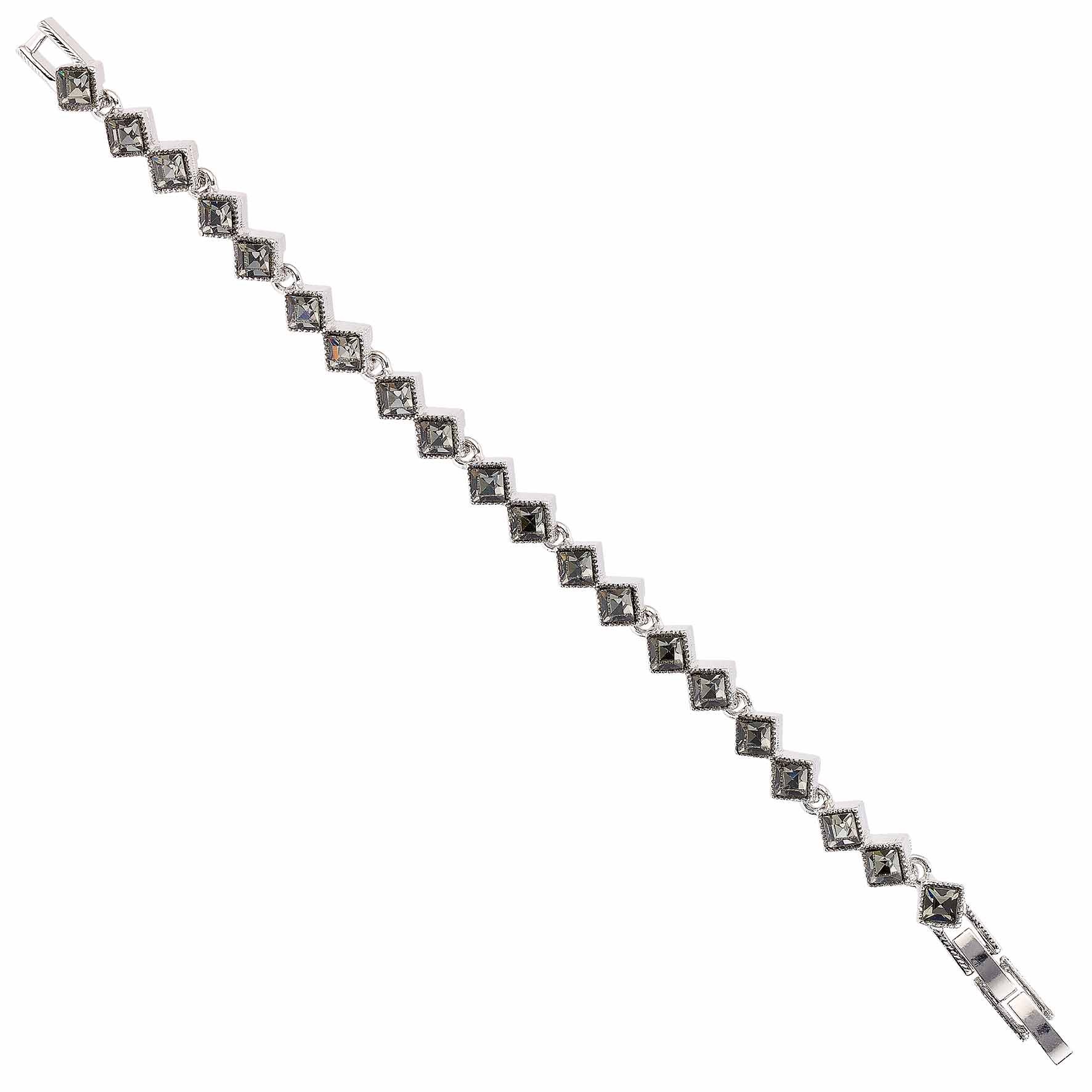 20 diamond square shaped black Swarovski crystals create this line bracelet. Each black crystal is approximately 4.5 in diameter.The bracelet weighs 20 grams.