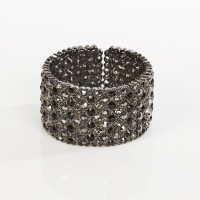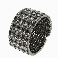 Hollywood Bangle made with Swarovski Black Cluster Crystal Stones. Elegant and close fitting to the wrist. With a selection of different coloured black Swarovski crystal Stones that completely fill the whole surface of the Bangle. This bangle opens from the back. Made by designer brand, Gemini Jewellery.